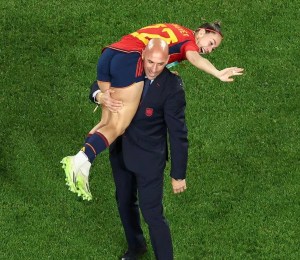 From the moment the team won, his behavior has been awful. His first instinct, at the referee whistle announcing the team’s historic victory, was to wave his balls at his critics. This is not offensive because he was standing next to members of Spain’s royal family. This is offensive because it shows the world the posture he has taken toward the people in the game who have been demanding that the federation do better. It shows a profound disrespect for the accomplishments of the women on the field, and the women off of it. And it shows how little he cares about the team’s fans.